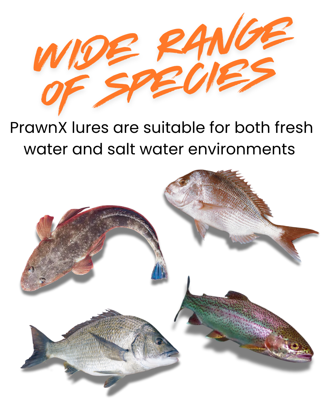 PrawnX lures are fantasic lures at an affordable price. I've caught all species of fish with them. They work well in both fresh and salt water⭐⭐⭐⭐⭐
